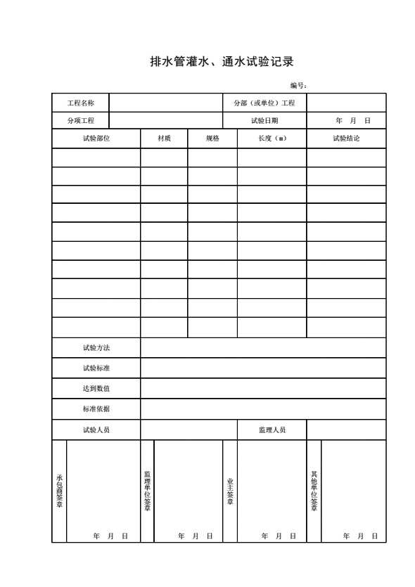 表格名称:排水管灌水、通水试验记录