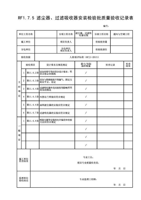 表格名称:1.7.5 滤尘器、过滤吸收器安装