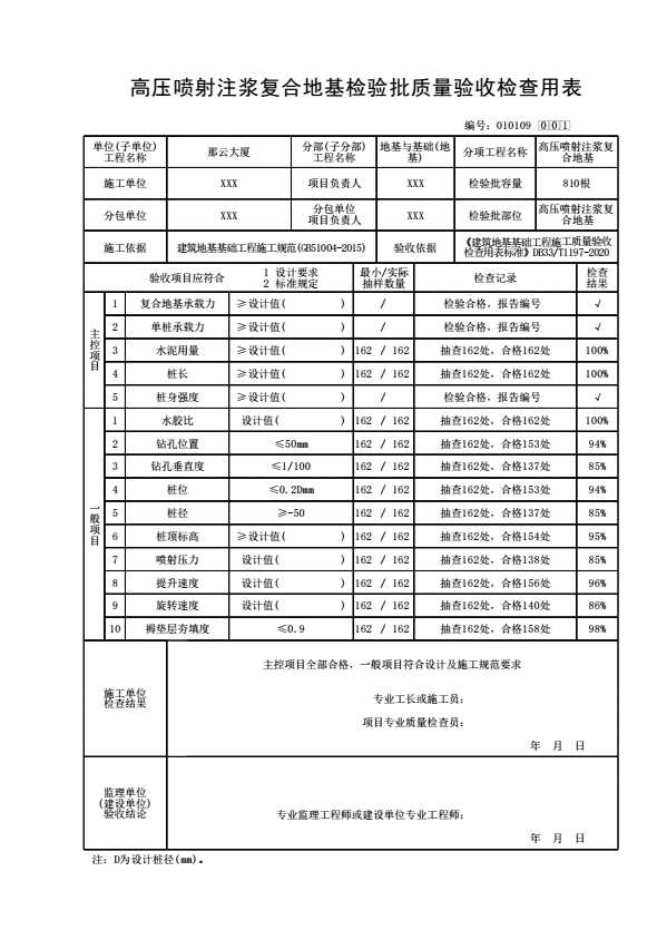 010109_高压喷射注浆复合地基检验批质量验收检查用表.