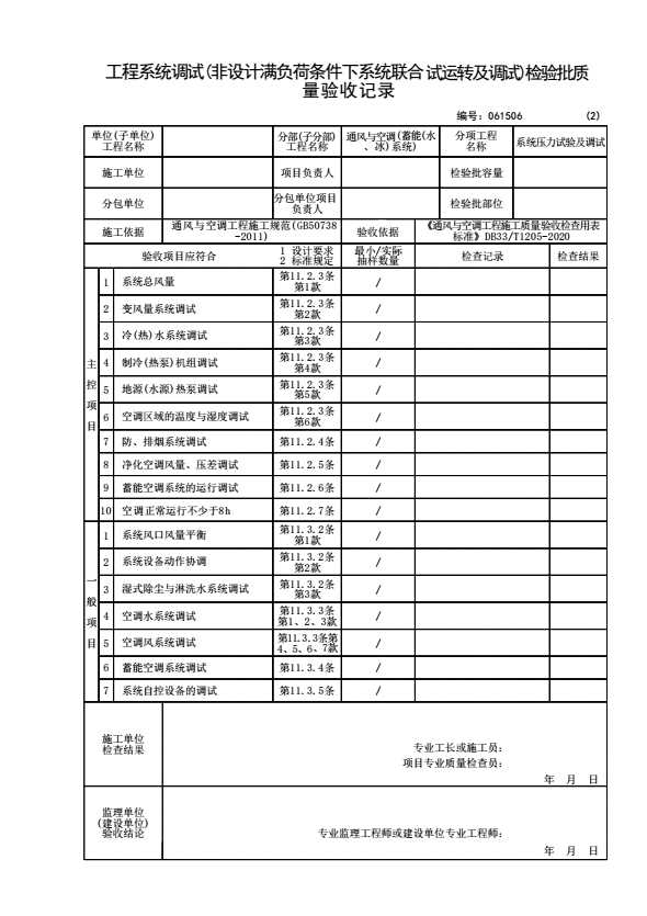 工程系统调试检验批验收质量验收记录