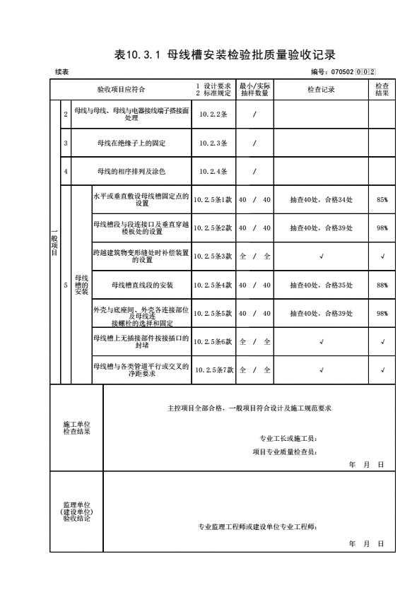 070502_母线槽安装检验批质量验收记录.