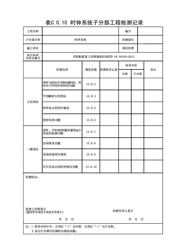 表格名称:表C.0.10 时钟系统子分部工程检测记录
