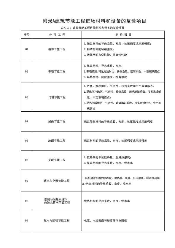 表格名称:29附录A建筑节能工程进场材料和设备的复验项目
