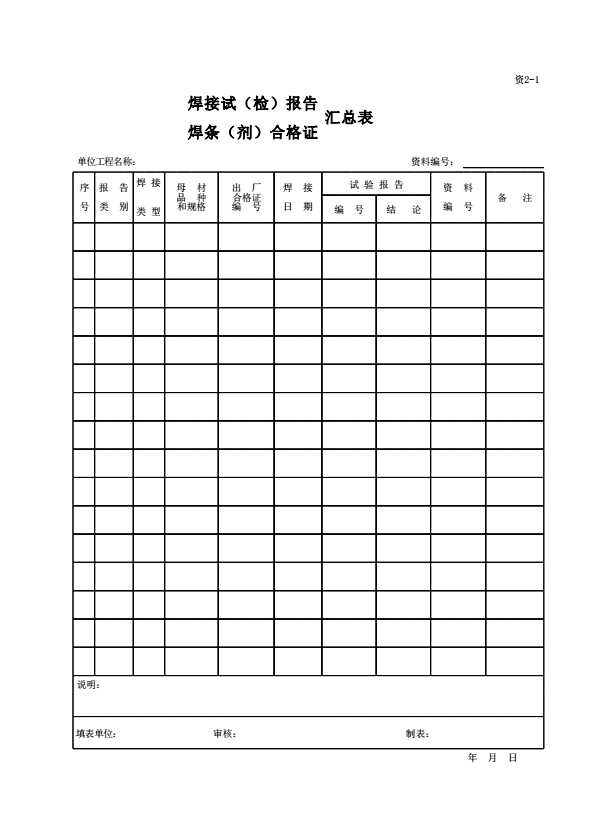 表格名称:焊接试(检)报告(焊条(剂)合格证汇总表