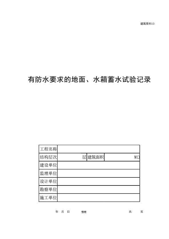 表格名称:有防水要求的地面,水箱蓄水试验 13