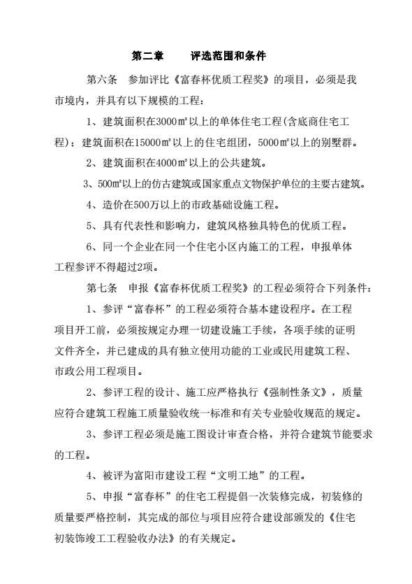 富阳市建设工程“富春杯”优质工程奖评比办法