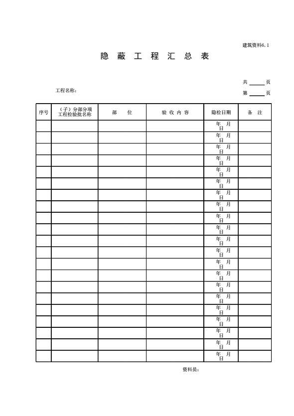 表格名称:45隐蔽工程汇总表