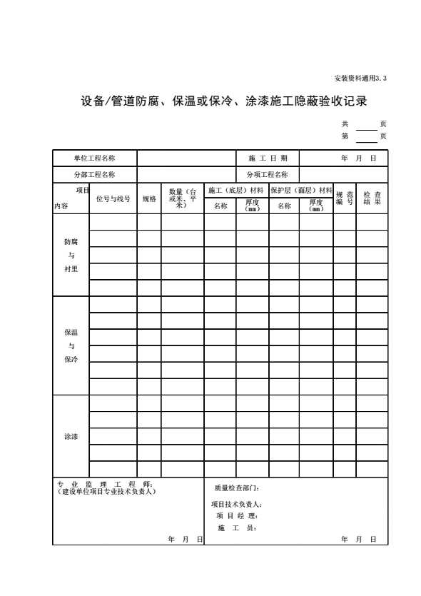 10 设备/管道防腐、保温或保冷、涂漆施工隐蔽验收记录