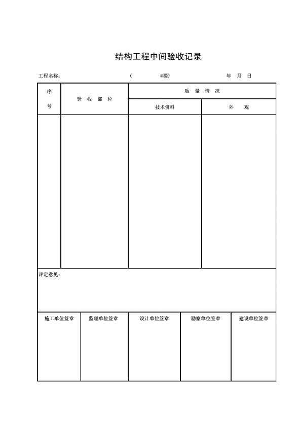 表格名称:结构工程中间验收记录(二)