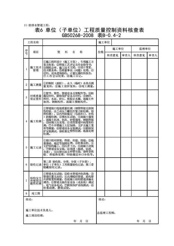 表格名称:附录6 单位(子单位)工程质量控制资料核查表