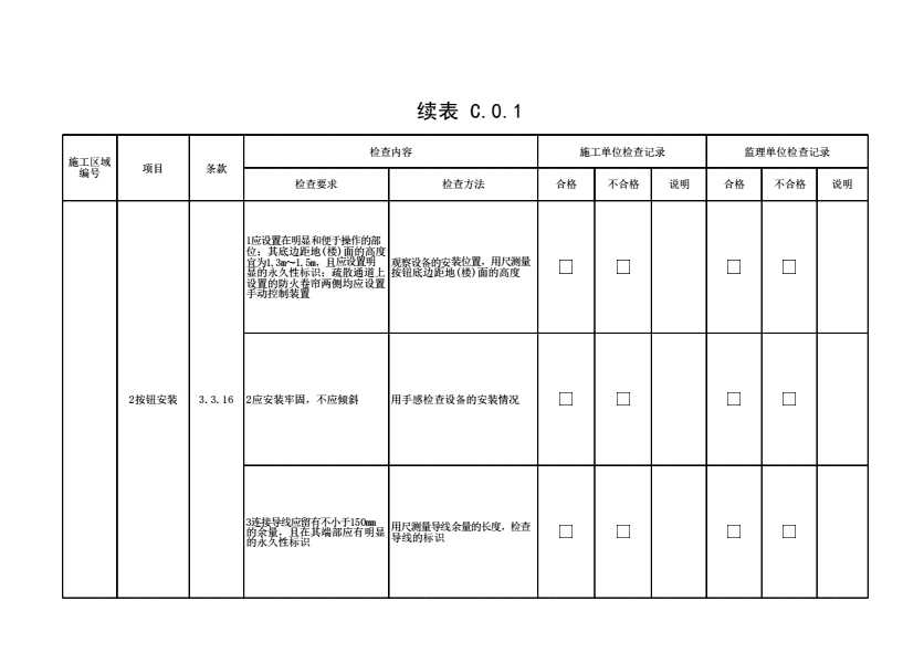 附录C 火灾自动报警系统材料、设备、配件进场检查和安装过程质量检查记录