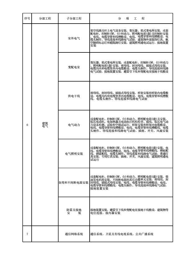 表格名称:B.0.1 建筑工程分部(子分部)工程、分项工程划分