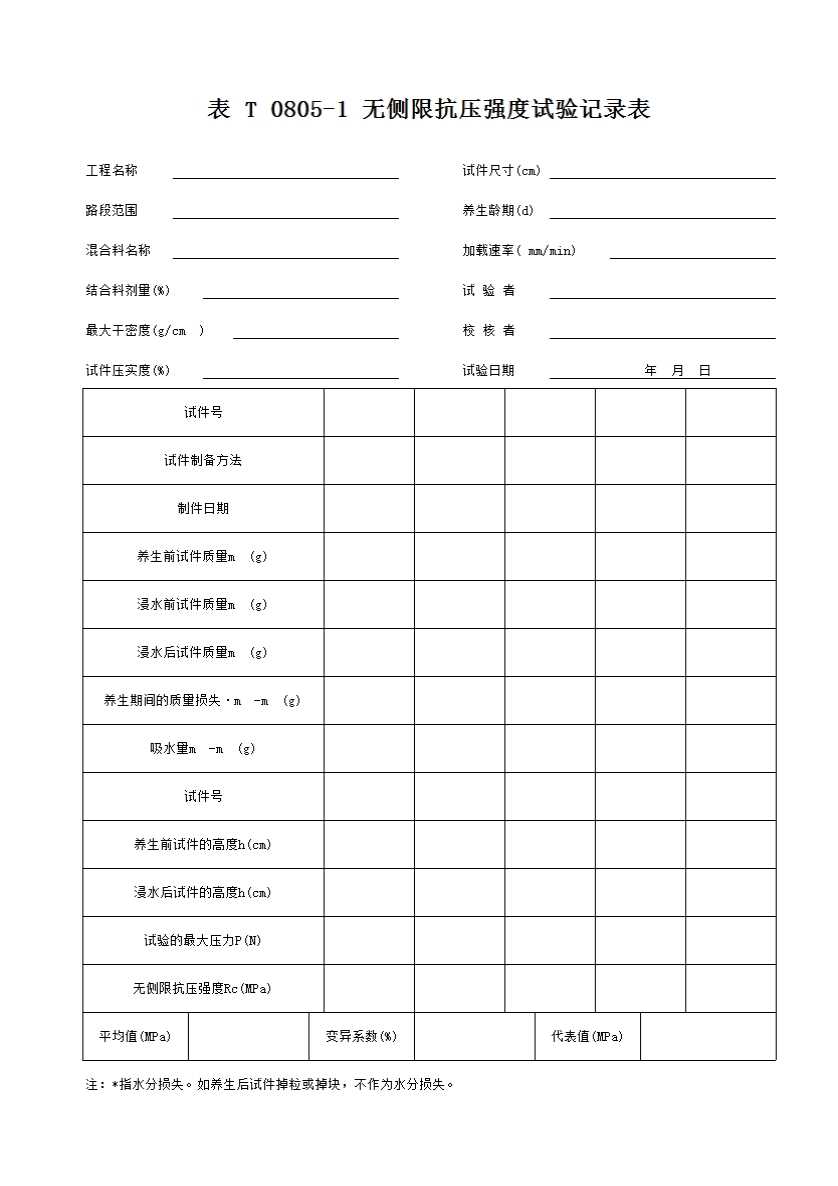 表格名称:表 T 0805-1 无侧限抗压强度试验记录表