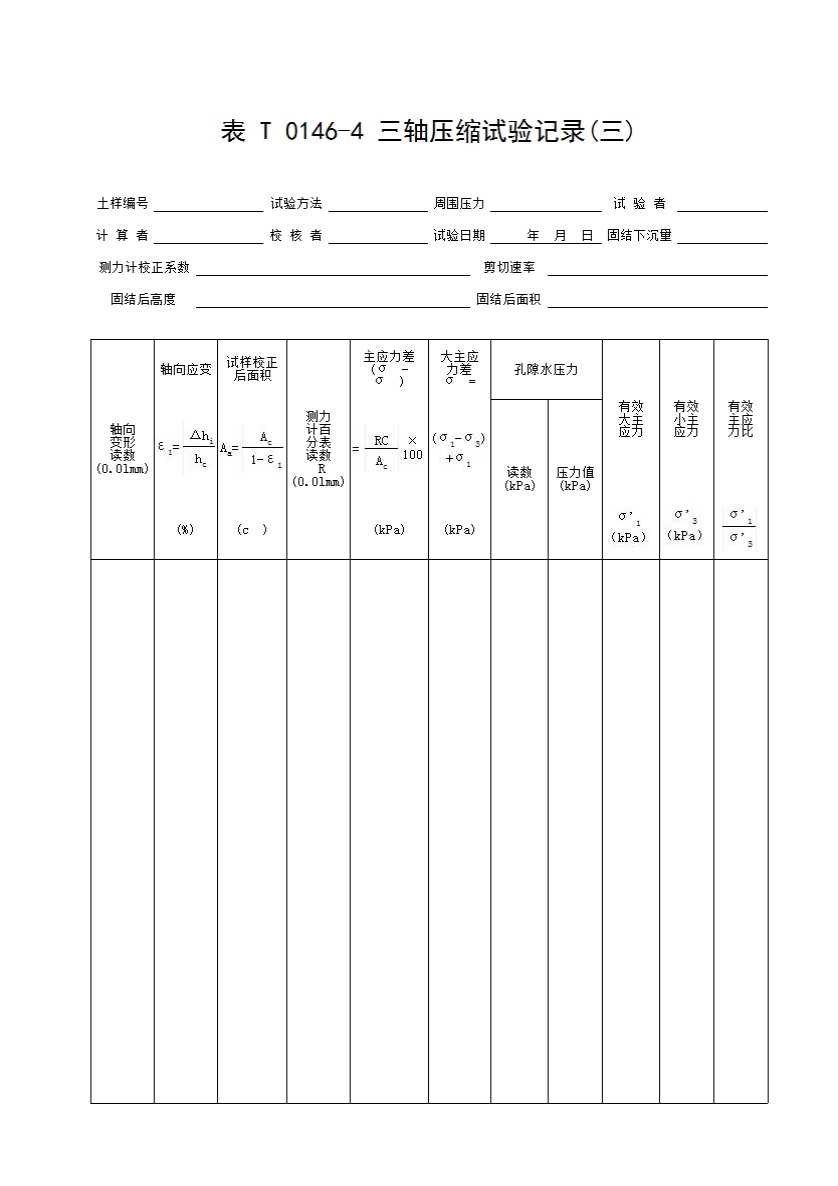 表格名称:表T0146-4 三轴压缩试验记录(三)