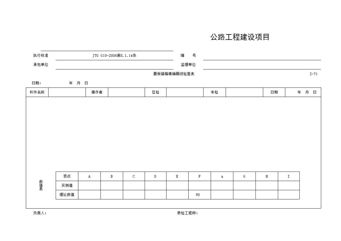 表格名称:I-71表 腹板锚箱精确画线检查表