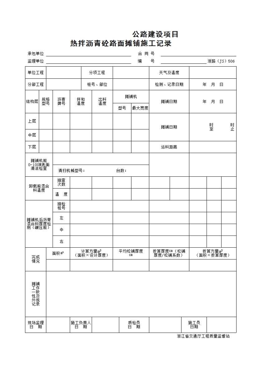 表格名称:JS506热拌沥青砼路面摊铺施工记录