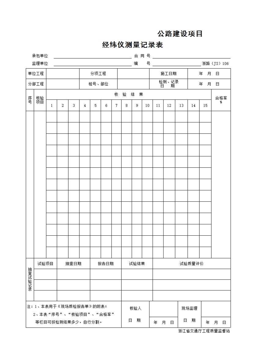 JS106监理工程师现场核验记录