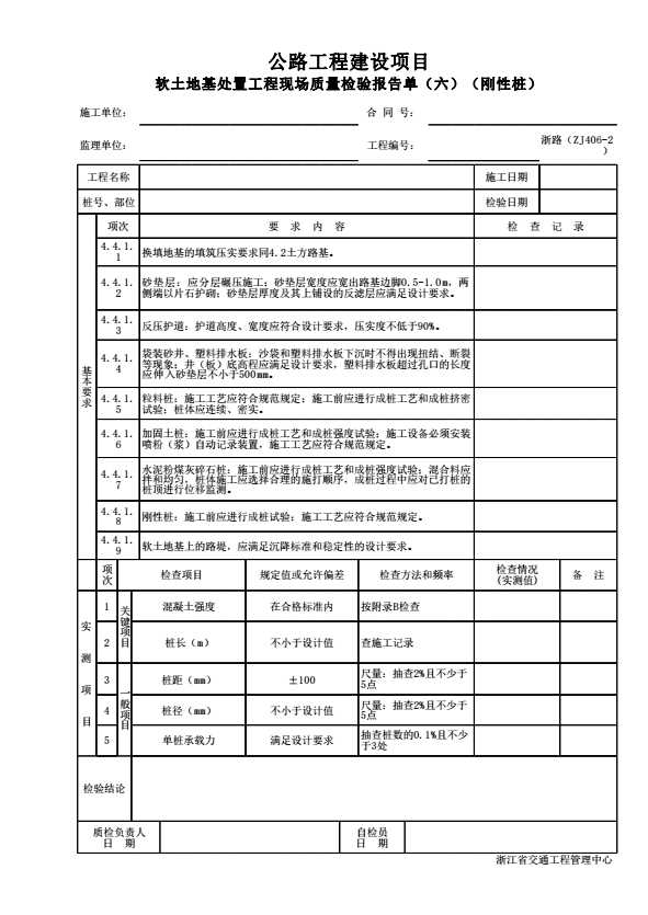 ZJ406-2 软土地基刚性桩工程现场质量检验报告单