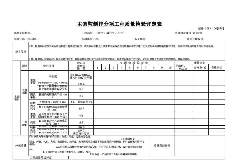 表格名称:ZP106(878) 主索鞍制作分项工程质量检验评定表