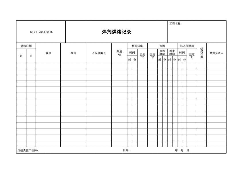表格名称:SH/T 3543-G116 焊剂烘烤记录