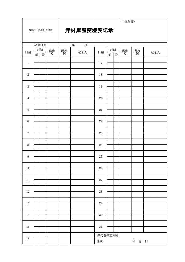 SH/T 3543-G120 焊材库温度湿度记录