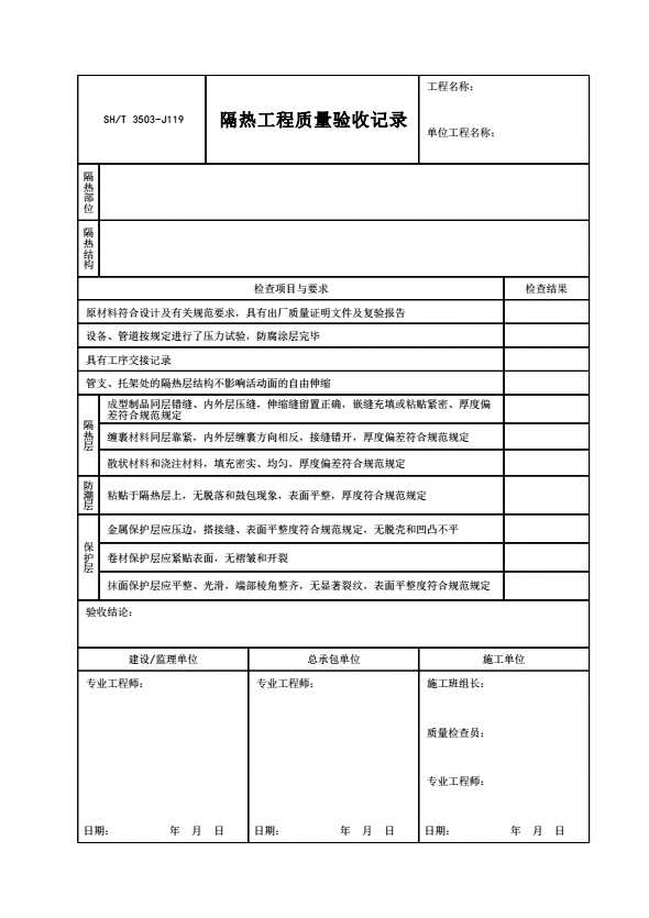 SH/T 3503-J119 隔热工程质量验收记录
