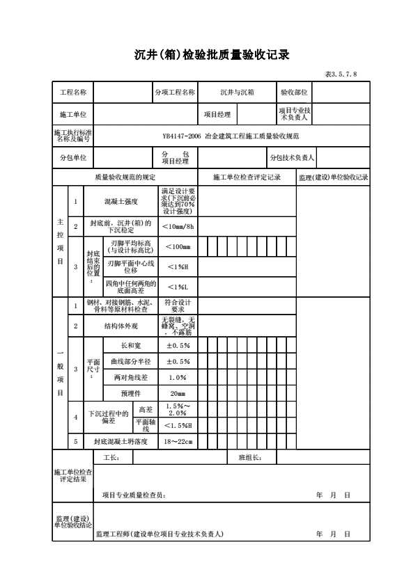 表格名称:表3.5.7 沉井(箱)检验批质量验收记录