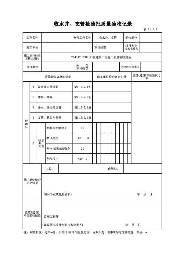 表格名称:表11.5.6 收水井、支管检验批质量验收记录