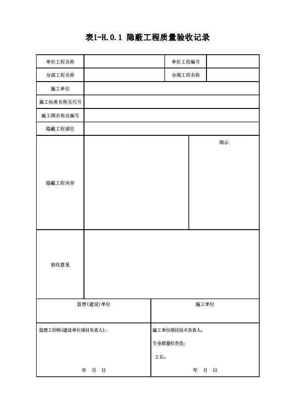 表格名称:附录 1-H 隐蔽工程质量验收记录