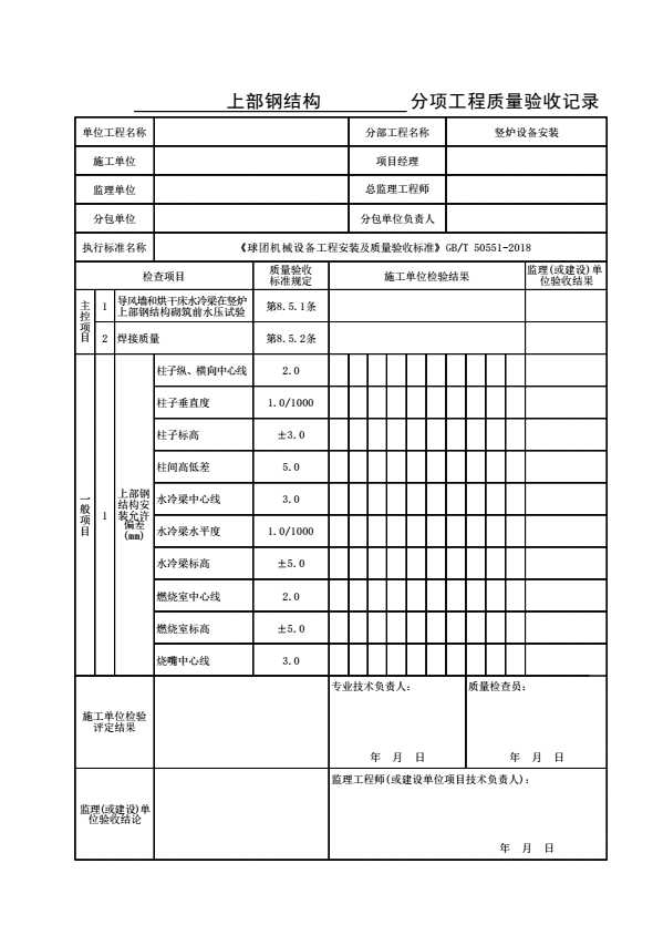 表格名称:上部钢结构分项工程质量验收记录