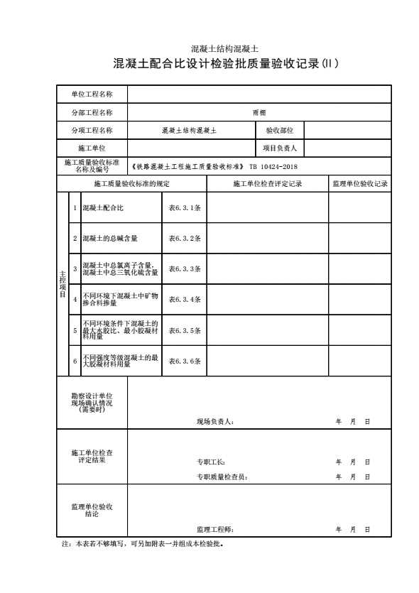 表格名称:【混凝土结构混凝土】混凝土配合比设计检验批质量验收记录(Ⅱ)