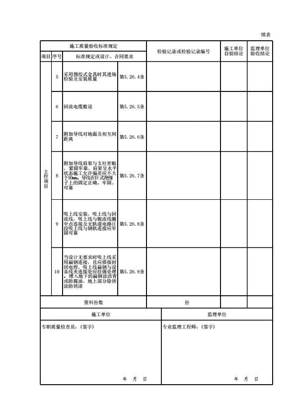 表格名称:10020501 附加导线检验批质量验收记录表