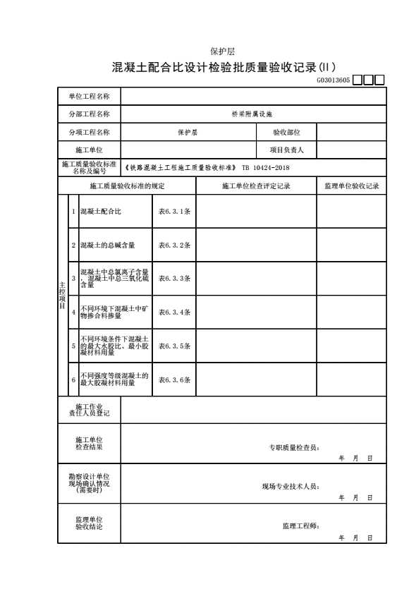 表格名称:G03013605 【保护层】混凝土配合比设计检验批质量验收记录(Ⅱ)