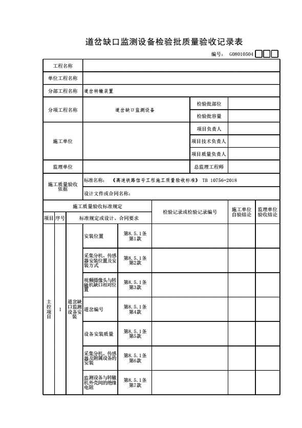 G08010504 道岔缺口监测设备检验批质量验收记录表