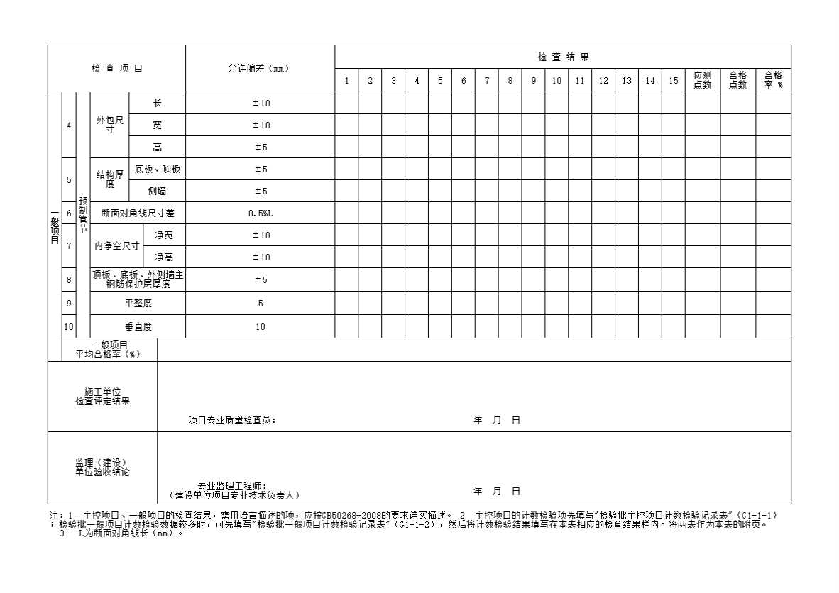 沉放的预制钢筋混凝土管节制作施工检验批质量验收记录表