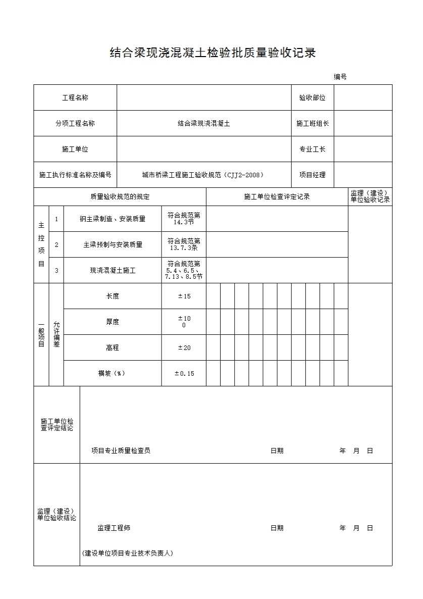 表格名称:结合梁现浇混凝土检验批质量验收记录