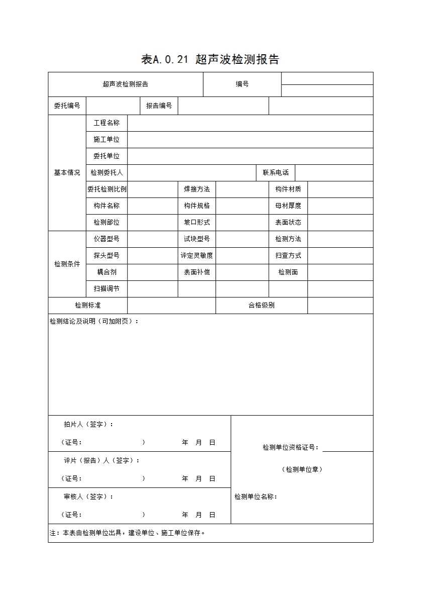 表A.0.21 超声波检测报告
