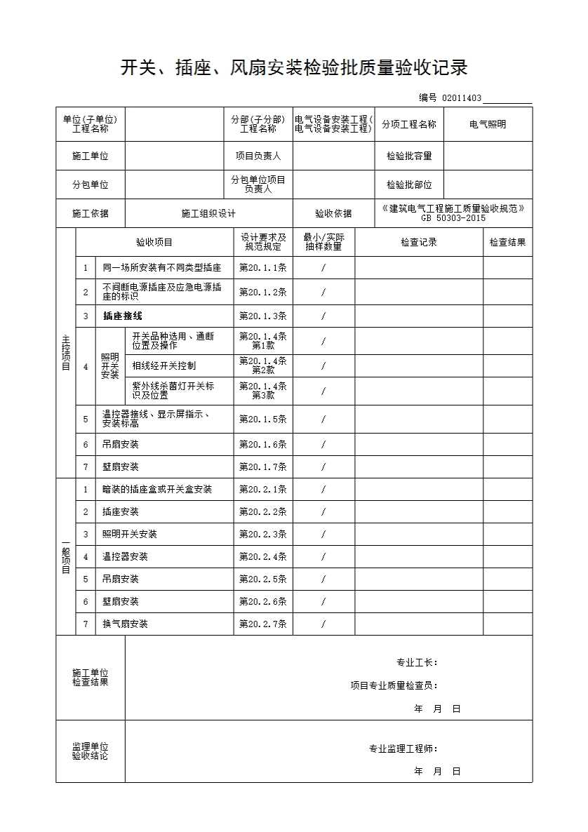 02011403_开关、插座、风扇安装检验批质量验收记录