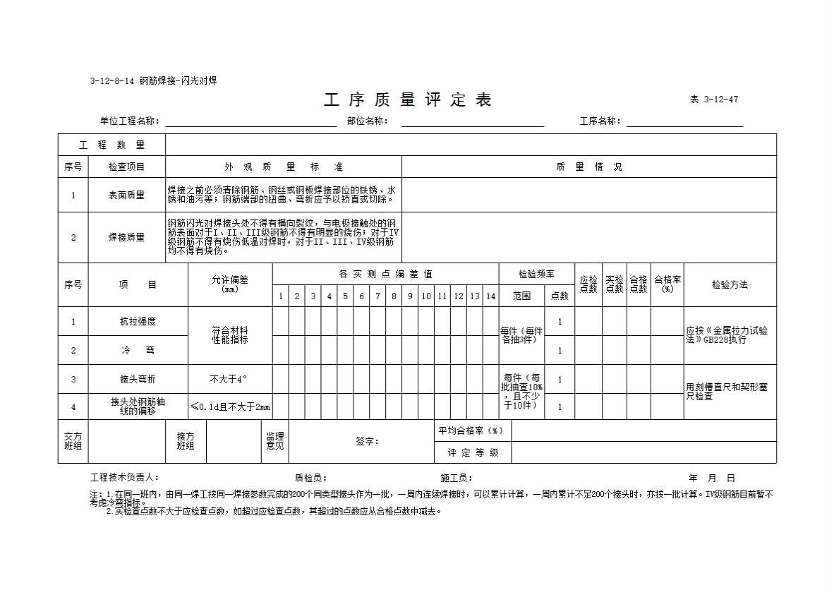 表格名称:工序质量评定表(钢筋焊接-闪光对焊)