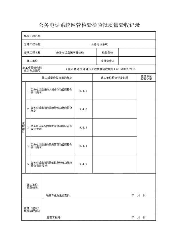 表格名称:公务电话系统网管检验检验批质量验收记录