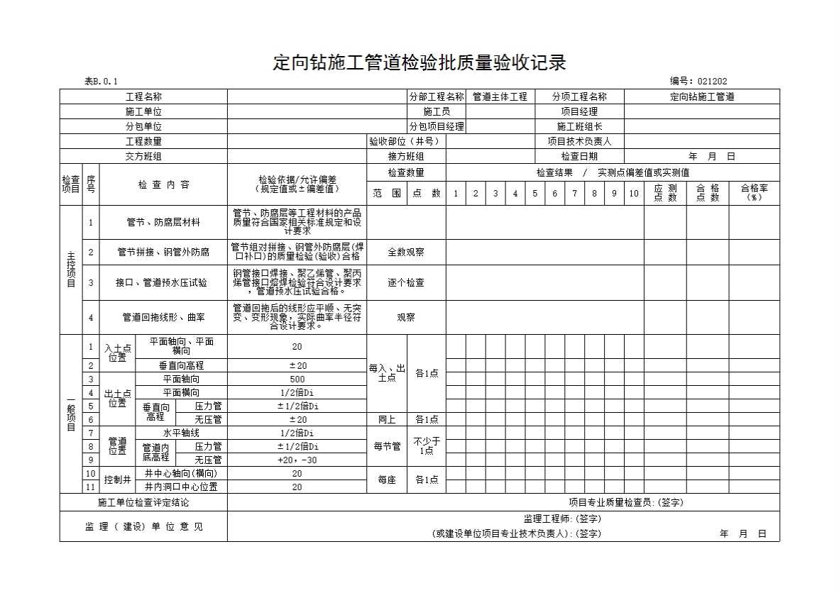 检查方法:观察;检查钻进、扩孔、回拖施工记录、探测记录。