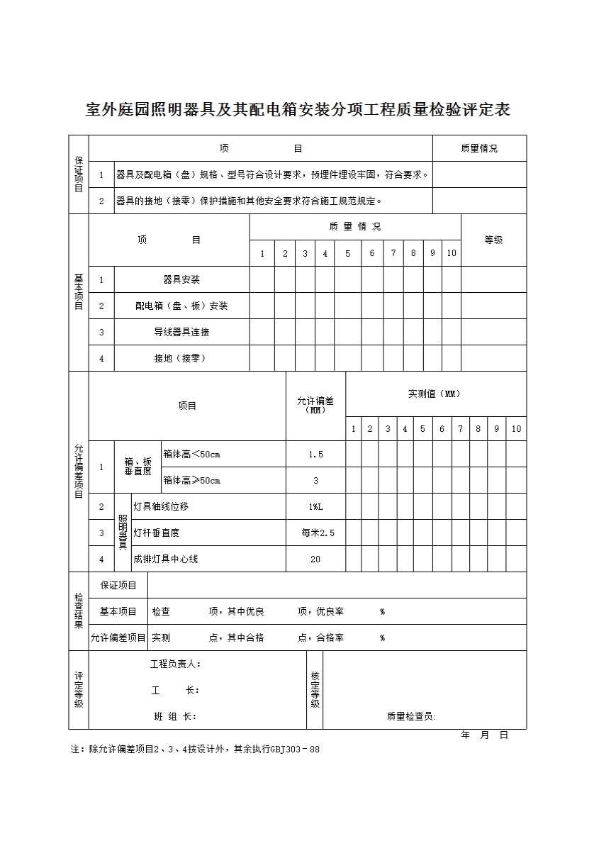 表格名称:46.室外庭园照明器具及其配电箱安装分项工程质量检验评定表
