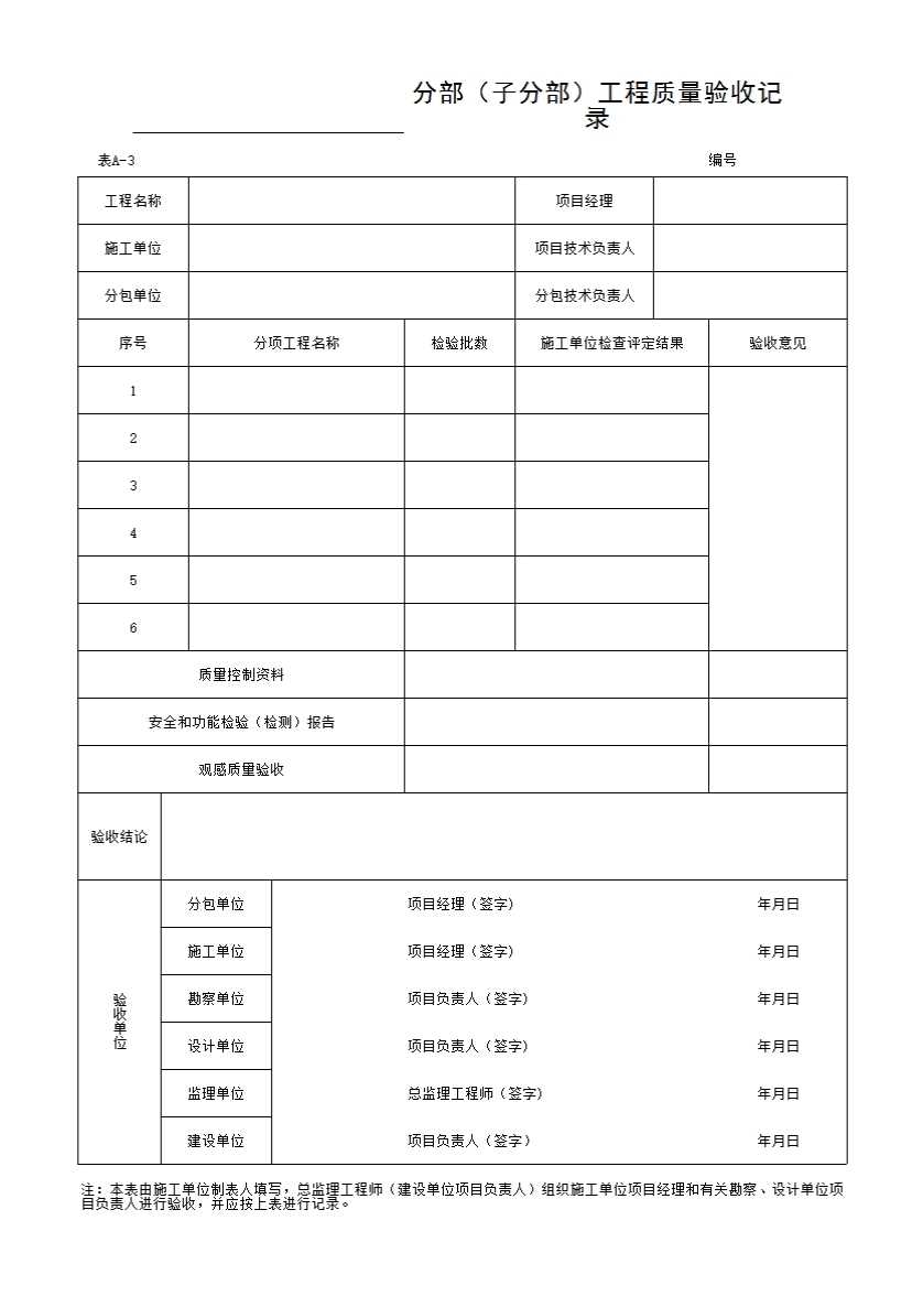 表格名称:分部(子分部)工程质量验收记录