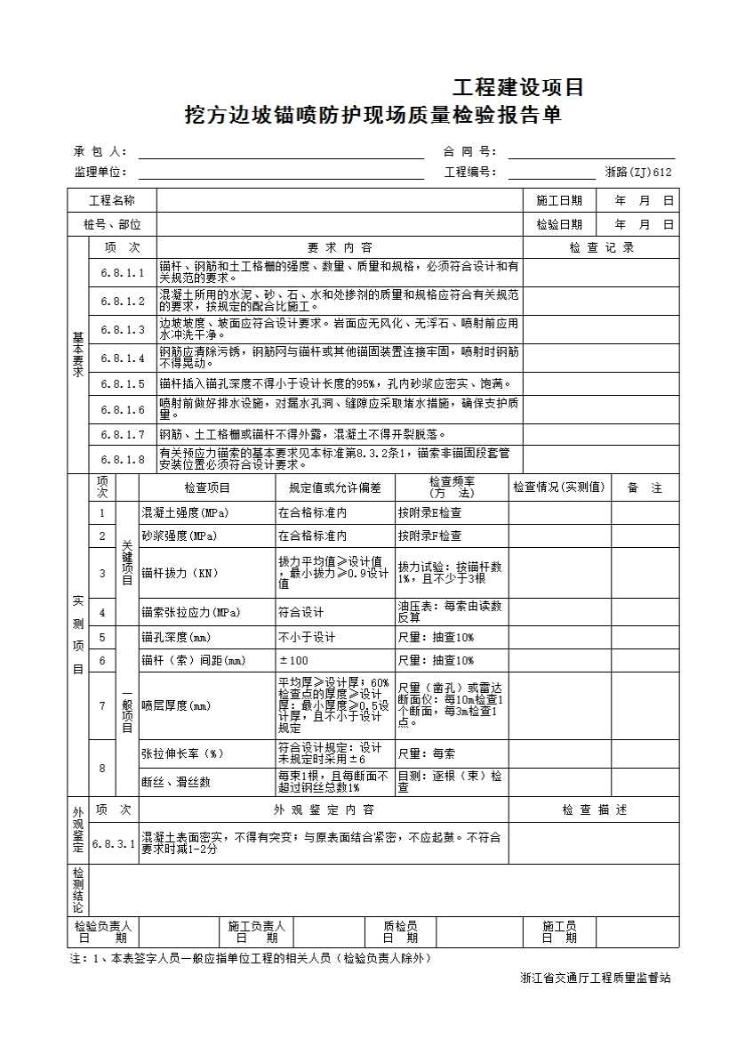 表格名称:612挖方边坡锚喷防护现场质量检验报告单