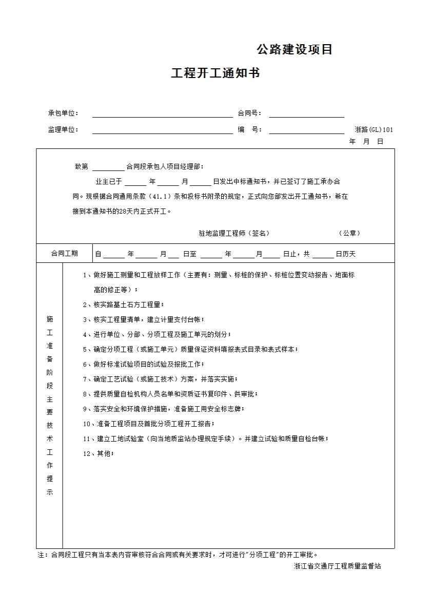 GL101工程开工通知书