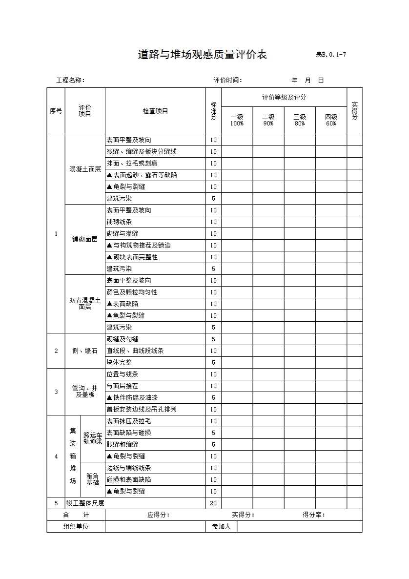 表格名称:表B.0.1-7 道路与堆场观感质量评价表