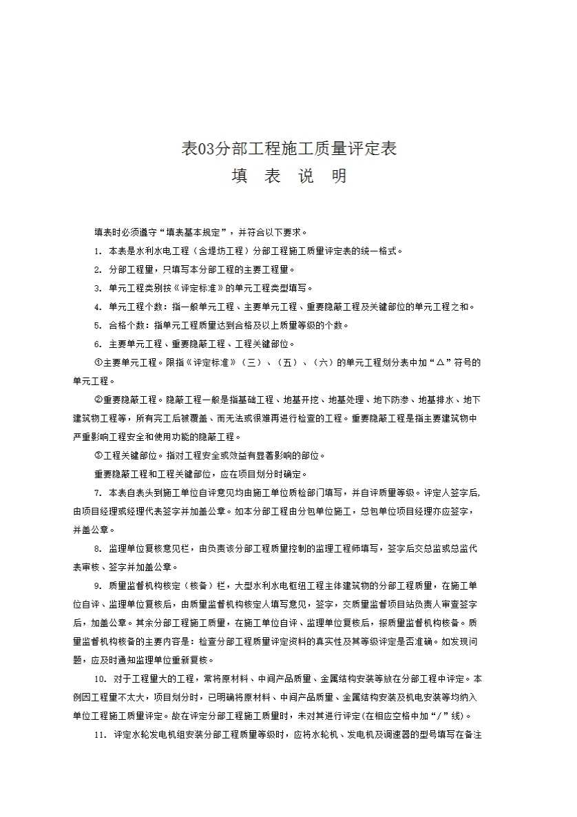 水利水电工程施工质量评定表填表说明与示例(办建管[2002]182号)