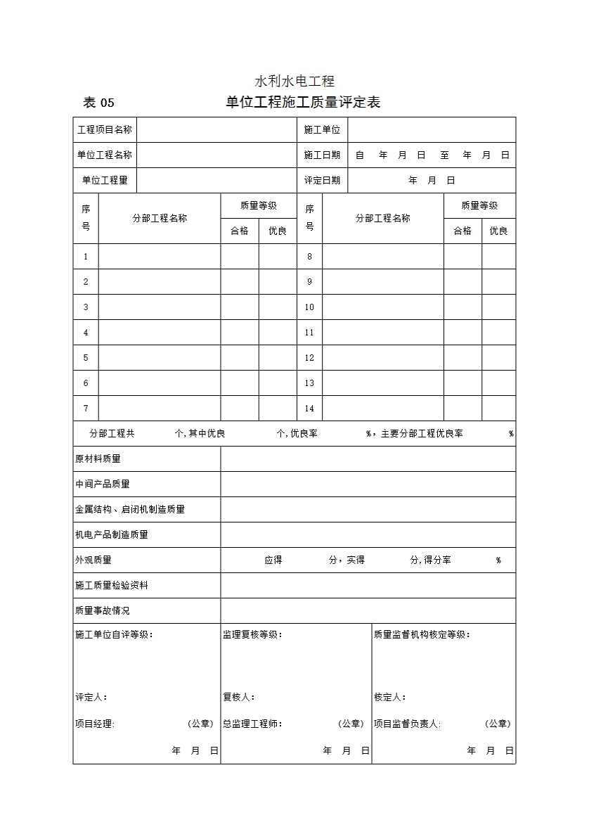 水利水电工程施工质量评定表填表说明与示例(办建管[2002]182号)