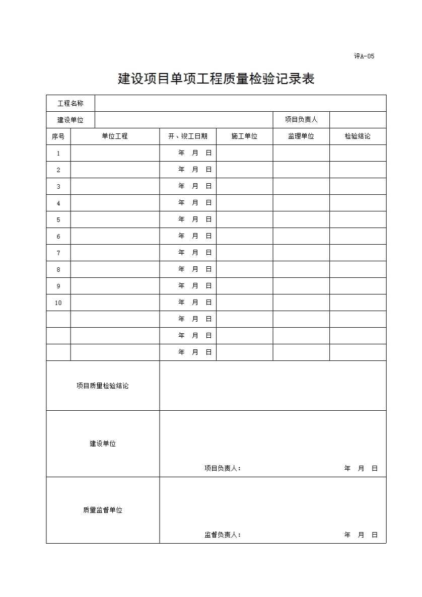表格名称:5、(评A-05)建设项目单项工程质量检验记录表
