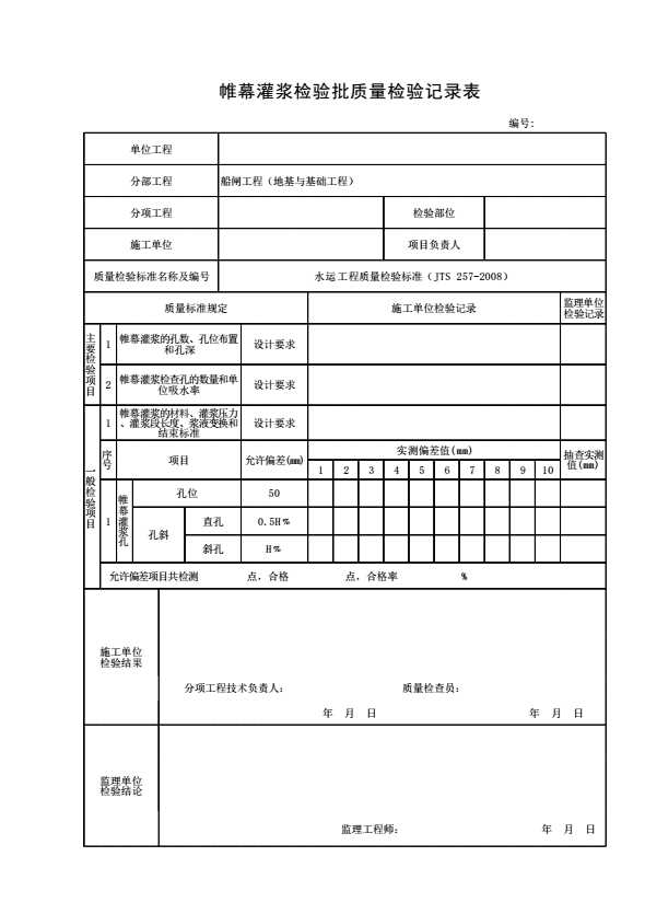 帷幕灌浆检验批质量检验记录表